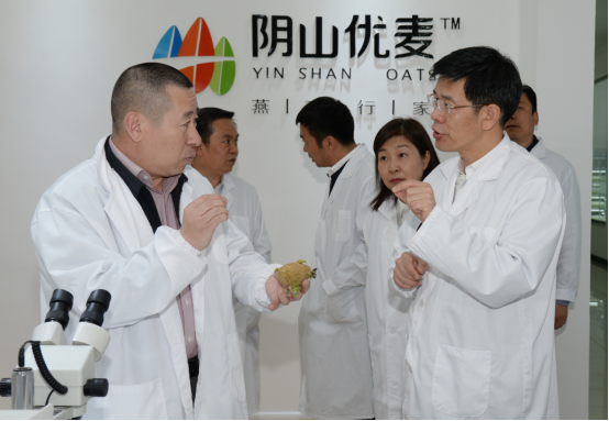 民豐種業(yè)董事長(zhǎng)盧文兵對(duì)公司近年來(lái)的發(fā)展情況以及企業(yè)三產(chǎn)融合的實(shí)施布局情況向黃志強(qiáng)副主席進(jìn)行了詳細(xì)的匯報(bào)。近幾年,民豐種業(yè)已發(fā)展成為中國(guó)集馬鈴薯、燕麥研發(fā)、種子生產(chǎn)、分級(jí)加工、物流倉(cāng)儲(chǔ)、推廣銷售于一體的現(xiàn)代化農(nóng)業(yè)企業(yè),是農(nóng)業(yè)產(chǎn)業(yè)化國(guó)家重點(diǎn)龍頭企業(yè)、國(guó)家高新技術(shù)企業(yè)、自治區(qū)扶貧龍頭企業(yè)。子公司陰山優(yōu)麥已發(fā)展成為中國(guó)燕麥深加工企業(yè),是自治區(qū)農(nóng)業(yè)產(chǎn)業(yè)化重點(diǎn)龍頭企業(yè)和自治區(qū)扶貧龍頭企業(yè),所生產(chǎn)的燕麥米、燕麥片、燕麥餐杯、燕麥高纖素等燕麥?zhǔn)称蜂N往全國(guó)二十多個(gè)省市,成為百姓餐桌上的大健康食品。子公司蒙薯食品“年產(chǎn)8000噸低溫油炸薯?xiàng)l、2000噸胡蘿卜脆片加工項(xiàng)目”也將于今年投產(chǎn)。