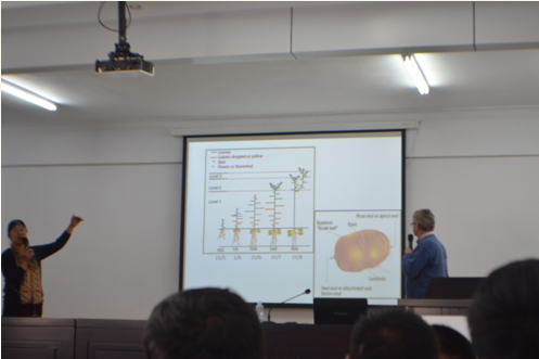 培訓(xùn)會(huì)上,Harrie先生對(duì)馬鈴薯規(guī)范化種植管理的重要意義進(jìn)行了深刻闡述,并就馬鈴薯各生長周期內(nèi)易發(fā)、頻發(fā)的病蟲害及其防治措施與馬鈴薯種植、生產(chǎn)全程現(xiàn)代化管理等內(nèi)容進(jìn)行了講解,理論聯(lián)系實(shí)際,內(nèi)容詳實(shí)全面,得到了參訓(xùn)學(xué)員的廣泛認(rèn)可。培訓(xùn)全程為英語授課,為了使參訓(xùn)學(xué)員能夠真正聽得懂、學(xué)得會(huì),公司特聘內(nèi)蒙古農(nóng)業(yè)大學(xué)農(nóng)學(xué)專業(yè)教授進(jìn)行了全程翻譯。